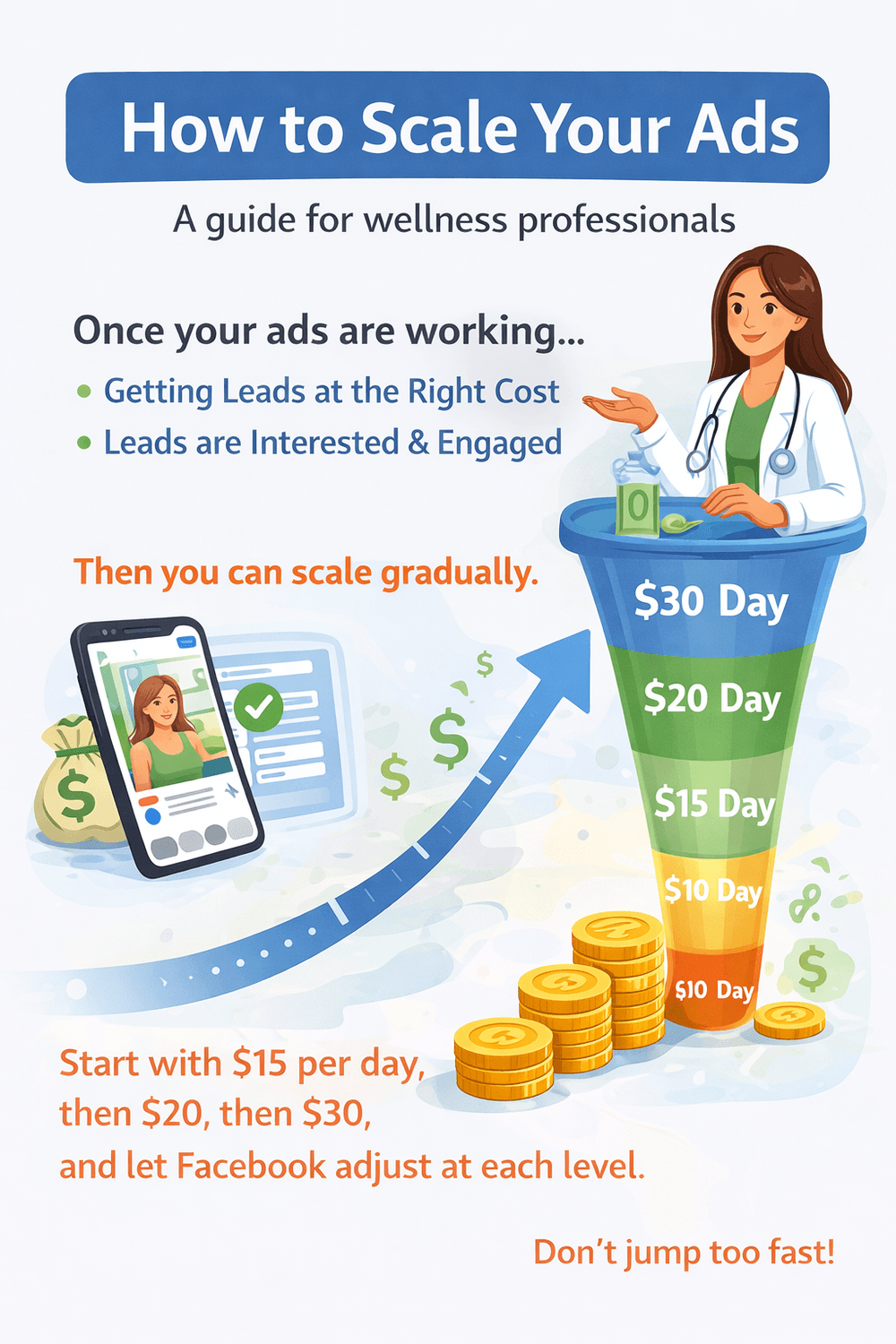 Once you have data showing that your ads are working—meaning you're getting leads at a cost that makes sense and those leads are actually interested—then you can scale.